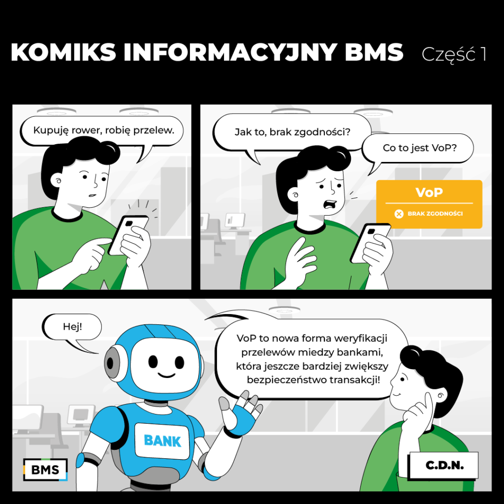 VoP, czyli weryfikacja odbiorcy płatności – komiks informacyjny BMS – cz.1
